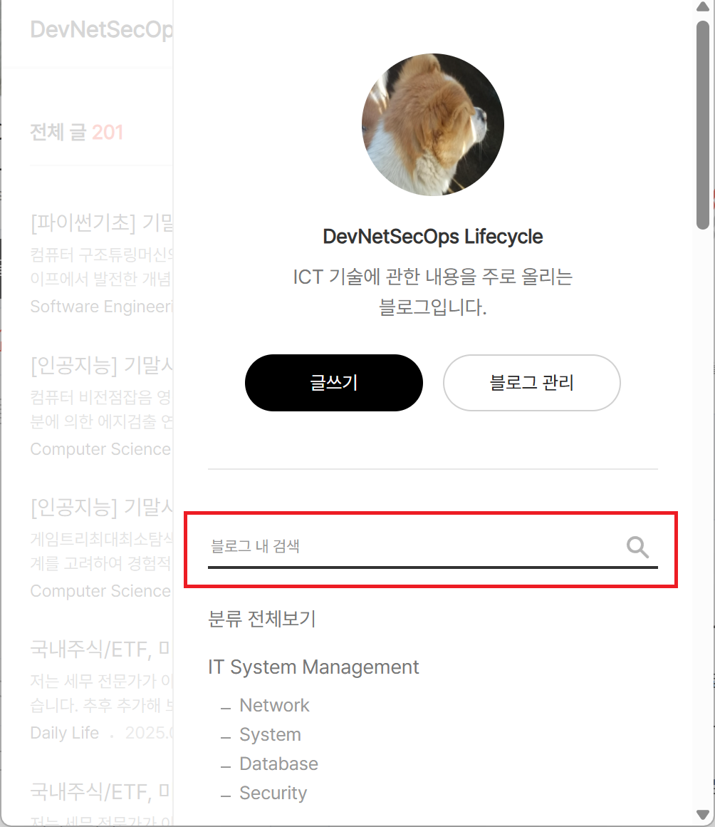 <label for="searchInput" class="screen_out">블로그 내 검색</label>