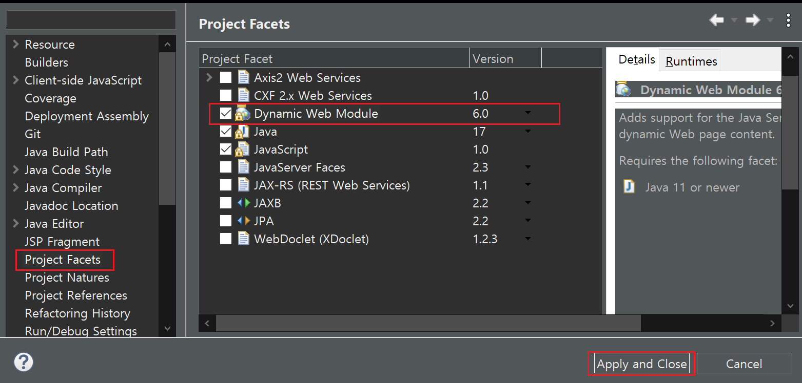 [Eclipse] 'The default superclass, "jakarta.servlet.http.HttpServlet", according to the project's Dynamic Web Module facet version (5.0), was not found on the Java Build Path.' 해결 방법